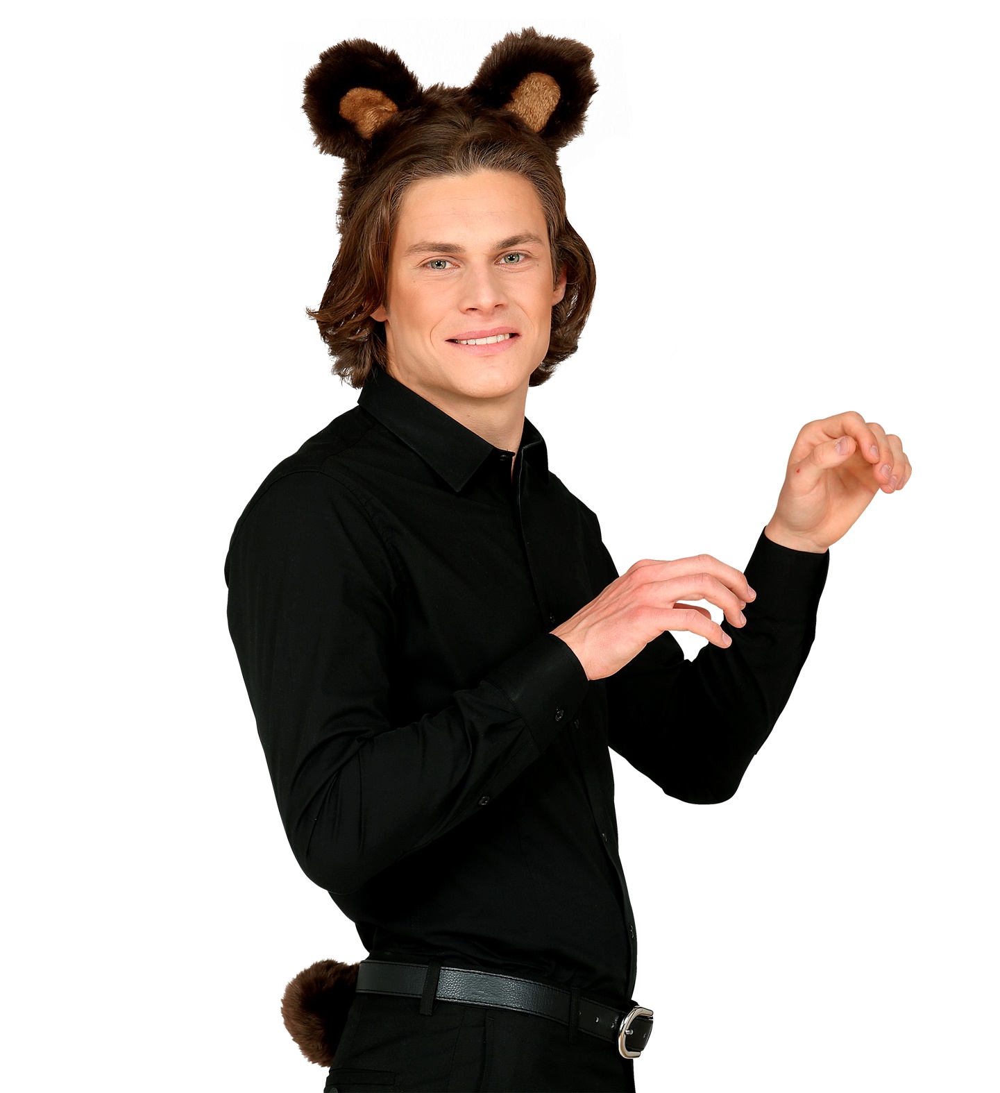 Komplektā ietilpst: galvas saite ar lāča ausīm un pūkainu, apaļu asti.