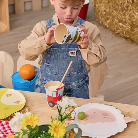 Стаканчики с декором «Фермерские животные» — 6 стаканчиков из крафт-картона и 3 декоративных рукава с разными рисунками.