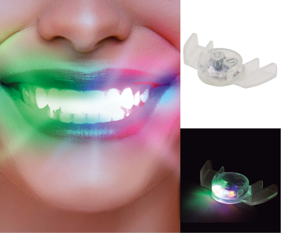 Iespaidīgs rotājums ballītēm un tematiskiem pasākumiem ir LED zobu plāksnīte, kas izgaismojas ar spilgtām gaismām.