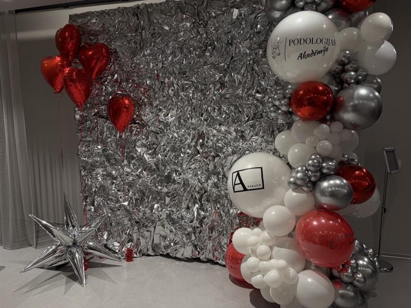 Uz baloniem pie foto sienas - iespējams iestrādāt personalizētus balonus (uzraksti, logo utt.)