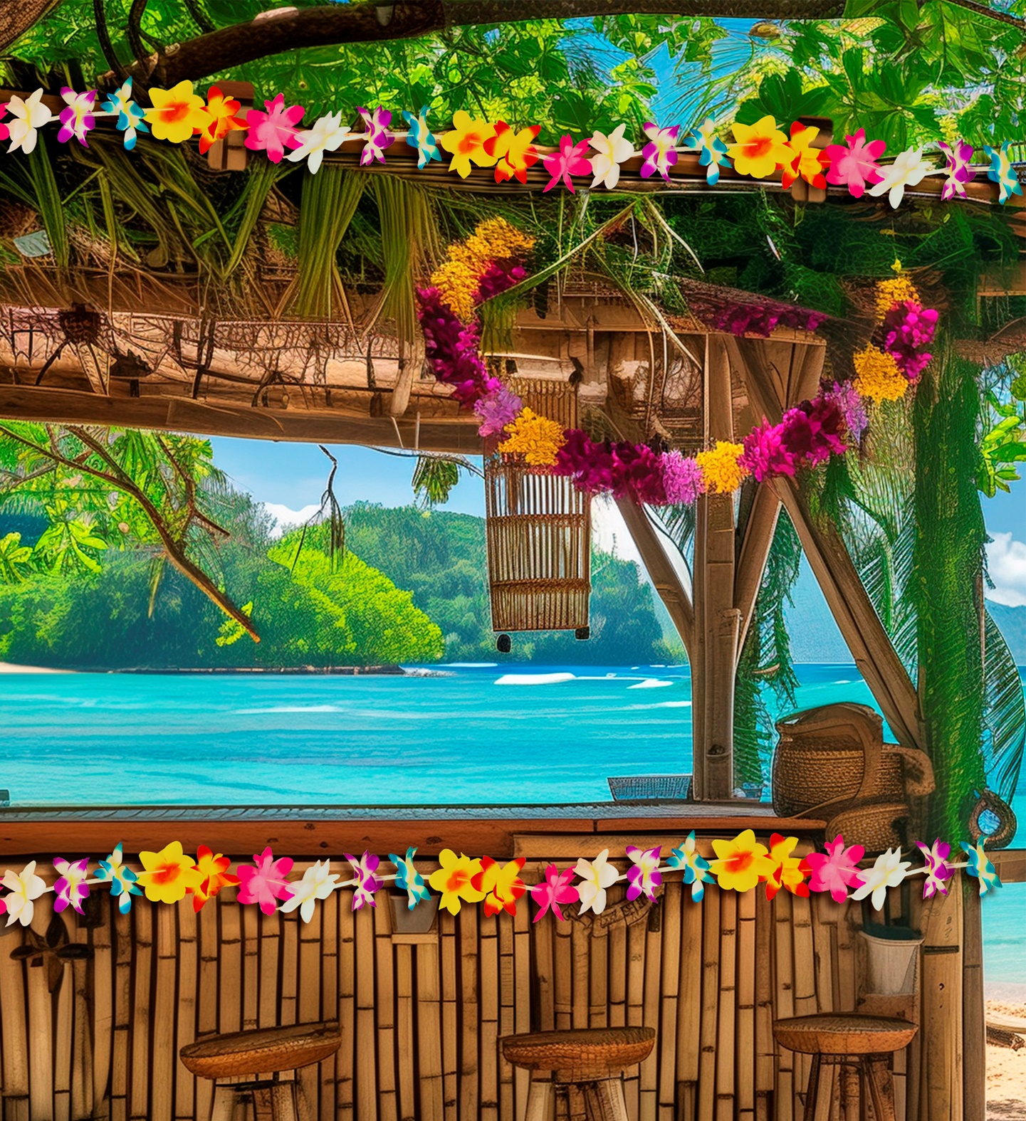 Декоративная гавайская цветочная гирлянда, которая будет великолепно смотреться на весенних праздниках.