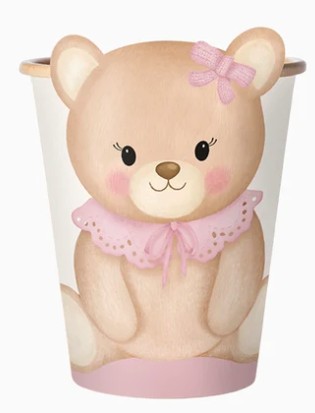 Glāzītes ar dekorācijām "Rozā lācītis" (6 gab./270 ml)