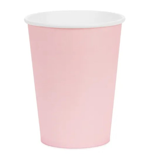 Rozā papīra glāzītes, piemērotas tematiskai krāsu ballītei, kā arī citām tēmām mūsu klāstā.