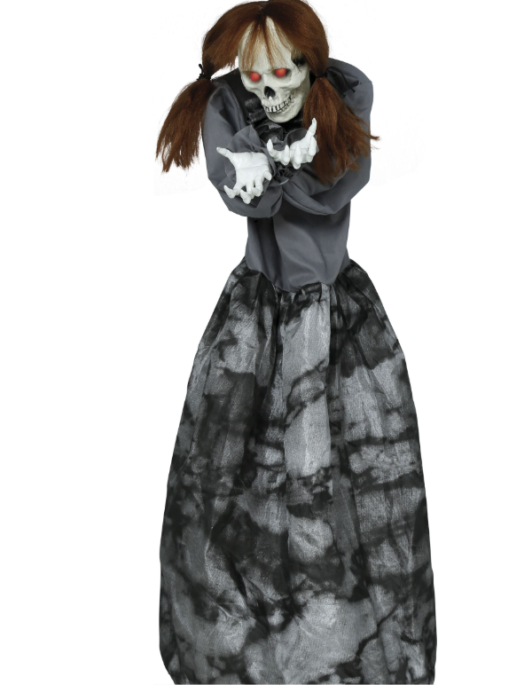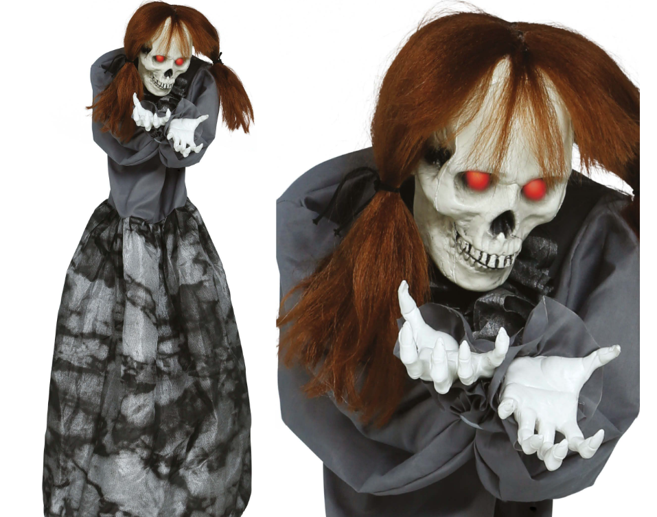 Ieslēgtā dekorācijā tā kustas, acis mirdz sarkanā krāsā un rada rāpojošas skaņas.
