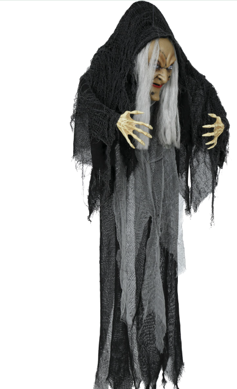 Интерактивная декорация «Горбатая ведьма» выглядит очень устрашающе и наверняка напугает не одного гостя.