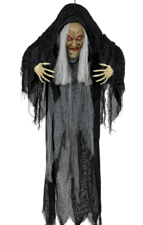 Интерактивная декорация «Горбатая ведьма» при включении двигается, глаза светятся красным и издаёт жуткие звуки.