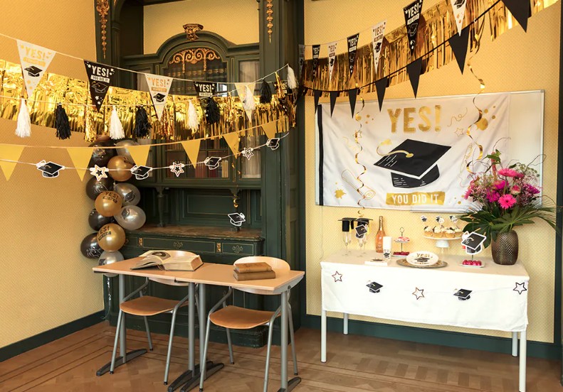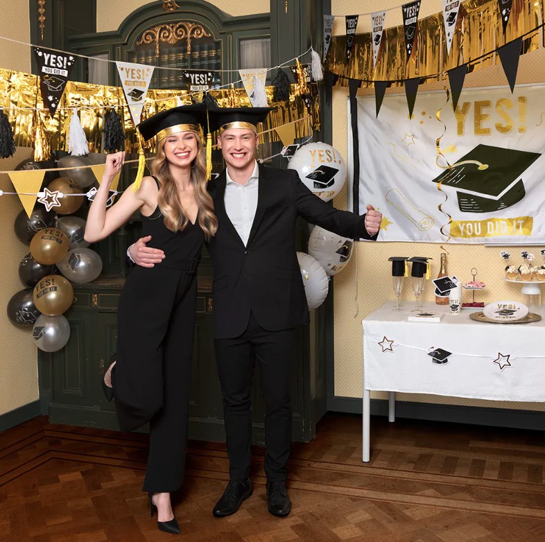 Karodziņ virtene "Yes! You did it", kas lieliski izskatīsies skolas vai universitātes izlaiduma ballītē.