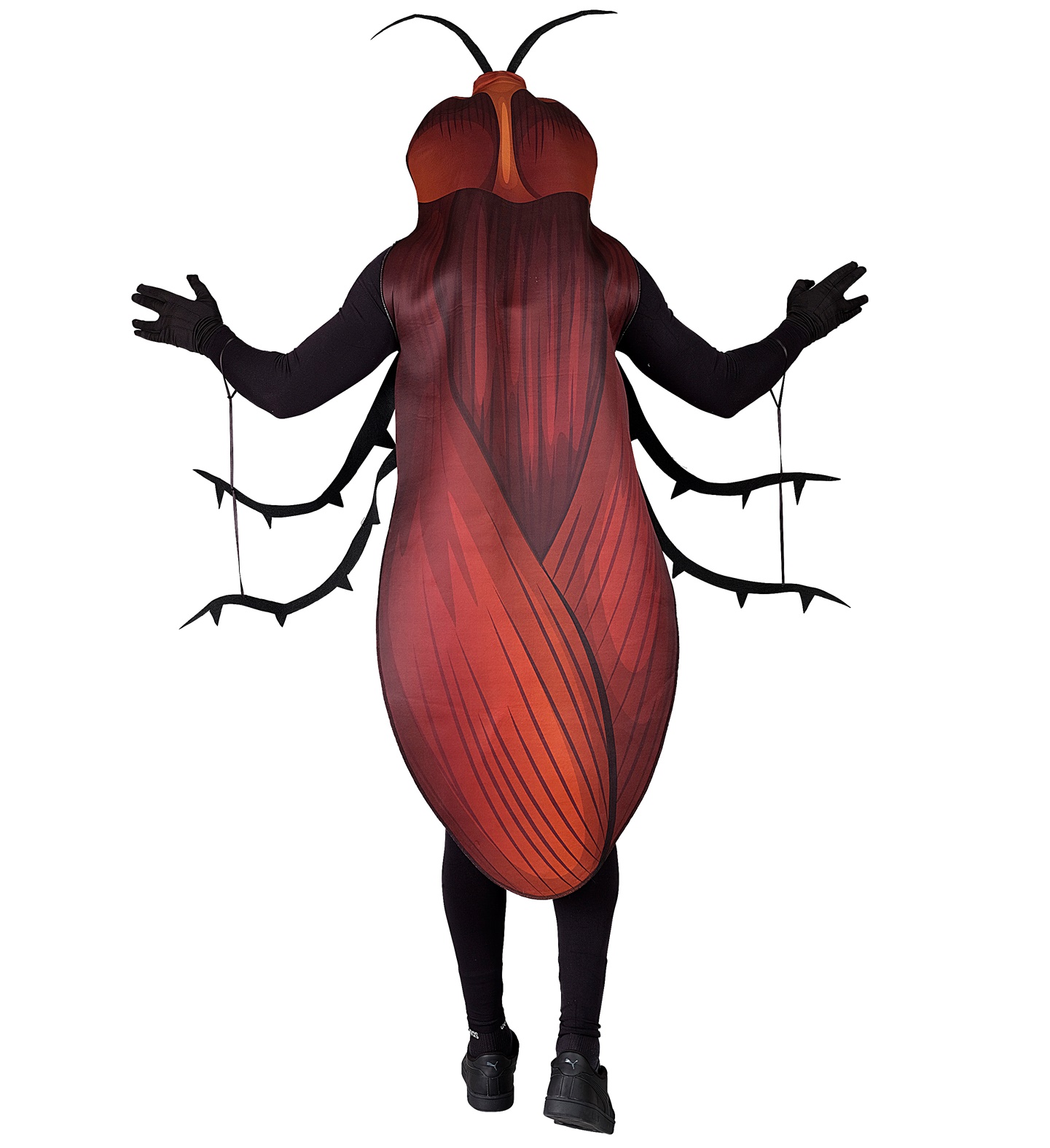 Prusaka kostīms ar brūniem spārnu imitācijas elementiem uz muguras, garām melnām ūsām un kustīgām vaboles kājām, kas piestiprinās pie rokām.