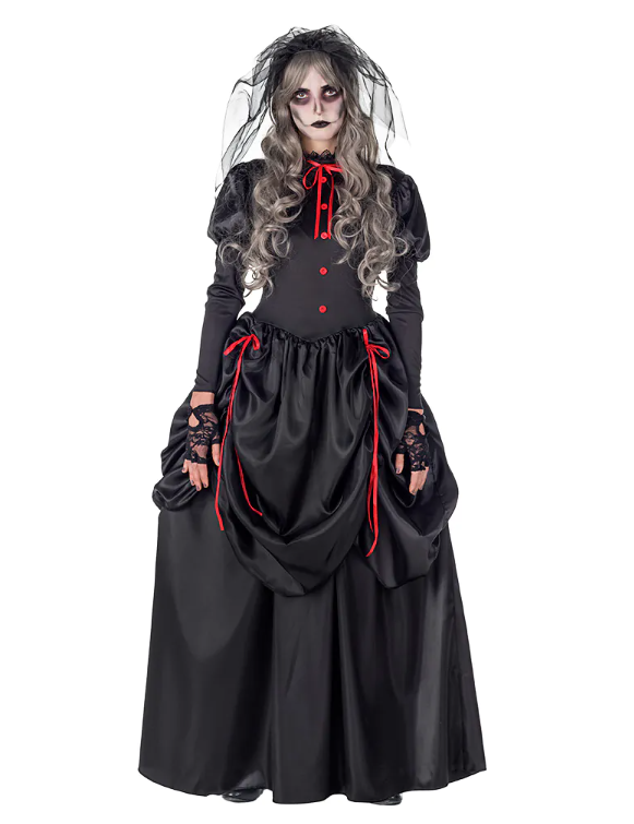 В комплект входит: чёрное платье с бантом; чёрная фата.