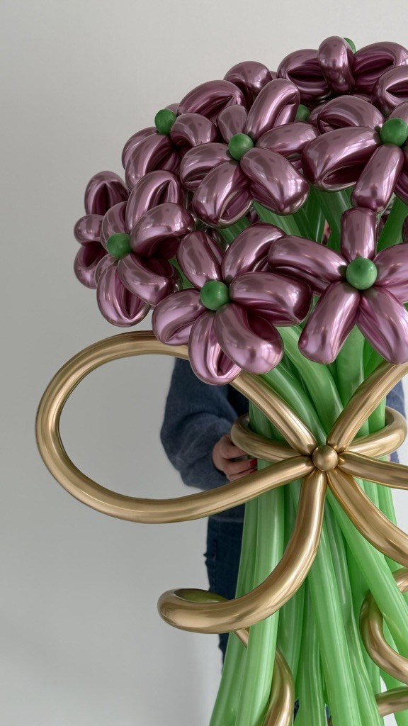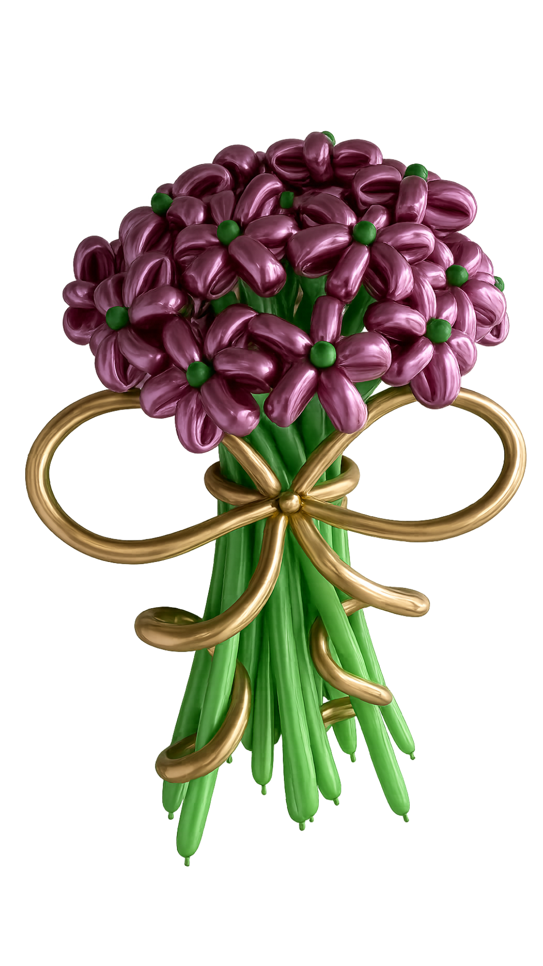 Balonu ziedu pušķis, kas sastāv no 20 balonu ziediem un dekoratīvas balonu bantes. Oriģināla un pamanāma dāvana dažādiem svētkiem, kas piešķir priecīgu un svinīgu noskaņu.