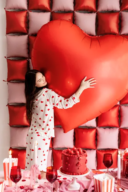 Liels sirds formas folijas balons, sarkanā krāsā.