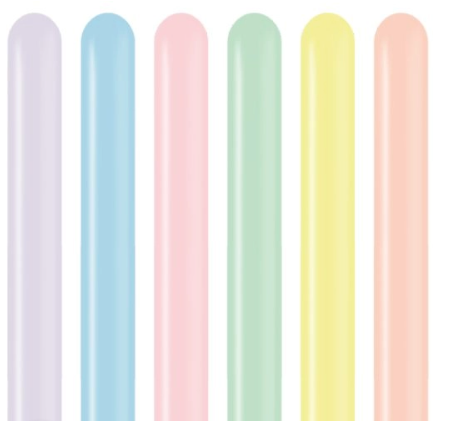 Krāsaini pasteļtoņu modelēšanas baloni 260M, kas lieliski piemēroti dažādu figūru locīšanai.