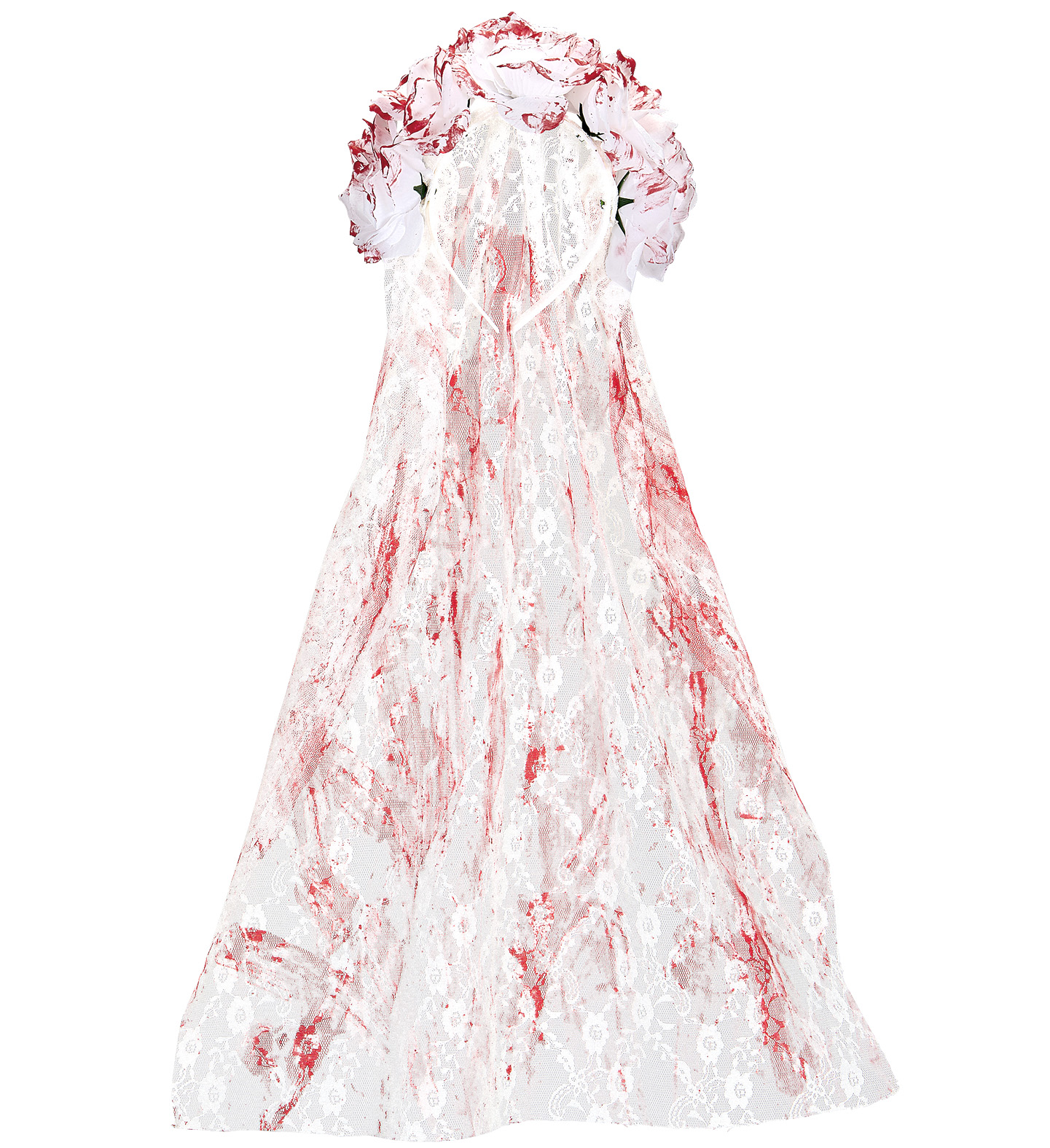 Белая повязка на голову с белым обручем, словно испачканная кровью, украшена белыми кровавыми розами.