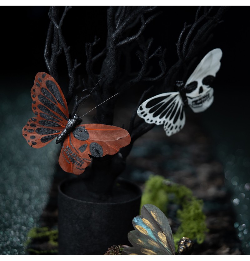 Dekoratīvās piespraudes "Galvaskausa tauriņi"