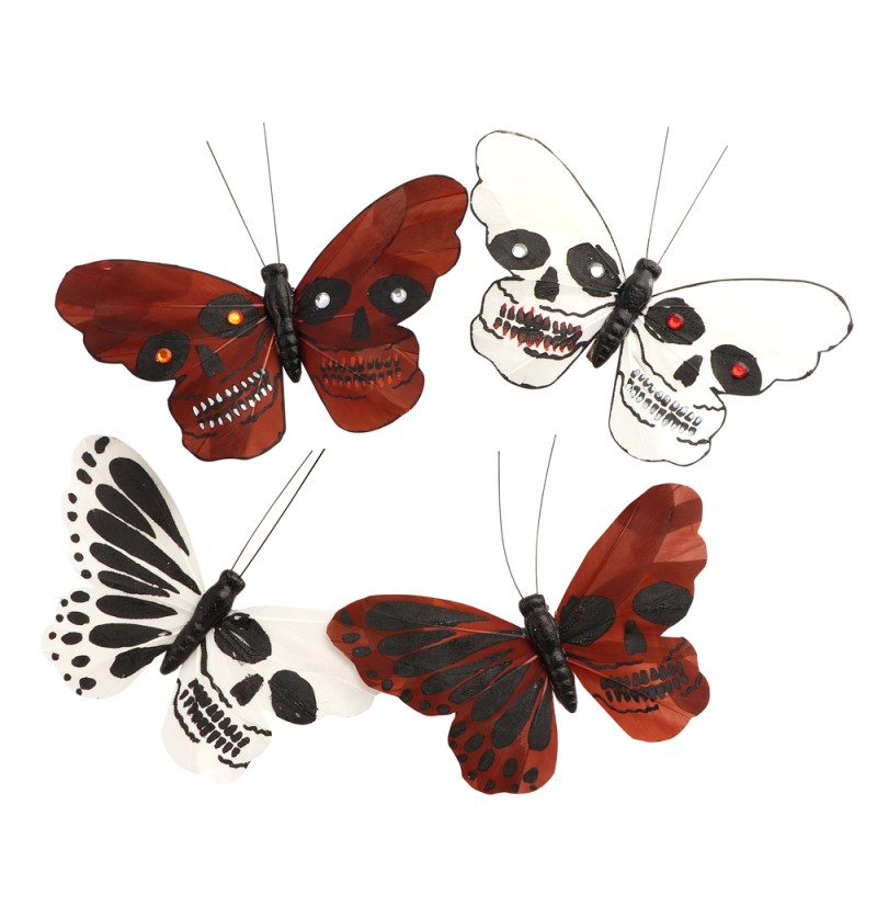 Dekorāciju klipši "Galvaskausa tauriņi" - melnas, baltas un sarkanas krāsu kombinācijas ar galvaskausa motīviem izskatās ļoti iespaidīgi un uzmanību piesaistoši.