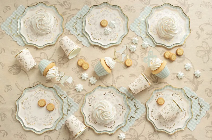 Šķīvji ir rūtaini ar zelta apmali, kas būs lieliski piemēroti tematiskajai ballītei vai draugu pulcēšanās reizei.