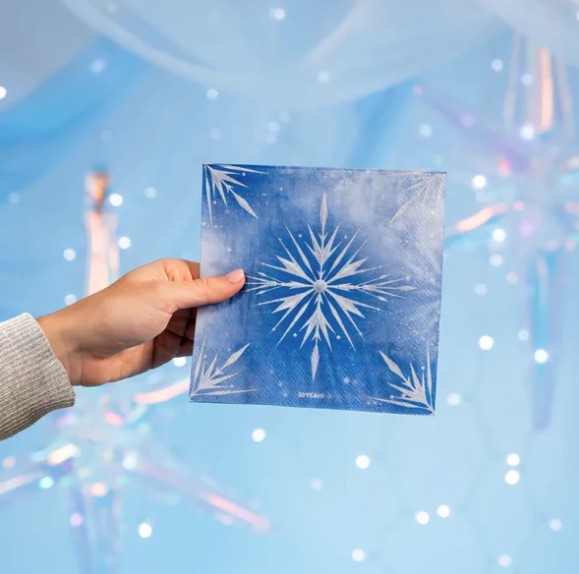 Синие бумажные салфетки, украшенные узором в виде снежинок.