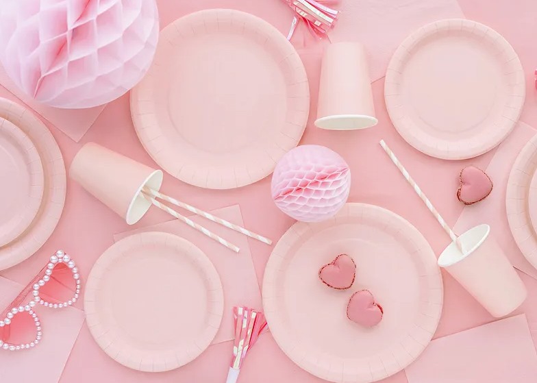 Rozā papīra šķīvīšī, kas rotās jebkuras svinības - kristības, dzimšanas dienu vai jautru kopā sanākšanu ar draugiem.