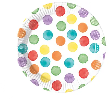 Šķīvji Krāsaini punktiņi, kas ir lieliski piemēroti bērnu brīvdienām vai sēdēšanai kopā ar draugiem.