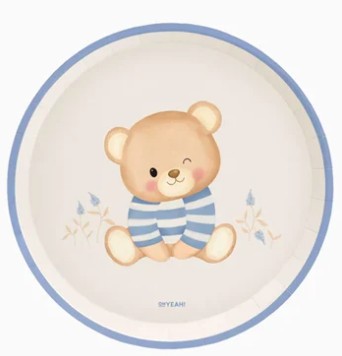 Mīlīgi šķīvji Zilā lāča formā, kas lieliski izskatīsies uz svētku galda un ir ideāli piemēroti ne tikai dzimšanas dienas ballītēm, bet arī kristībām vai bērnu sagaidīšanas ballītēm.