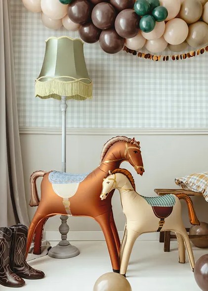 Liels stāvošs folija balons "Apseglots zirgs" - ideāli piemērots rotaļīgai ballītei.