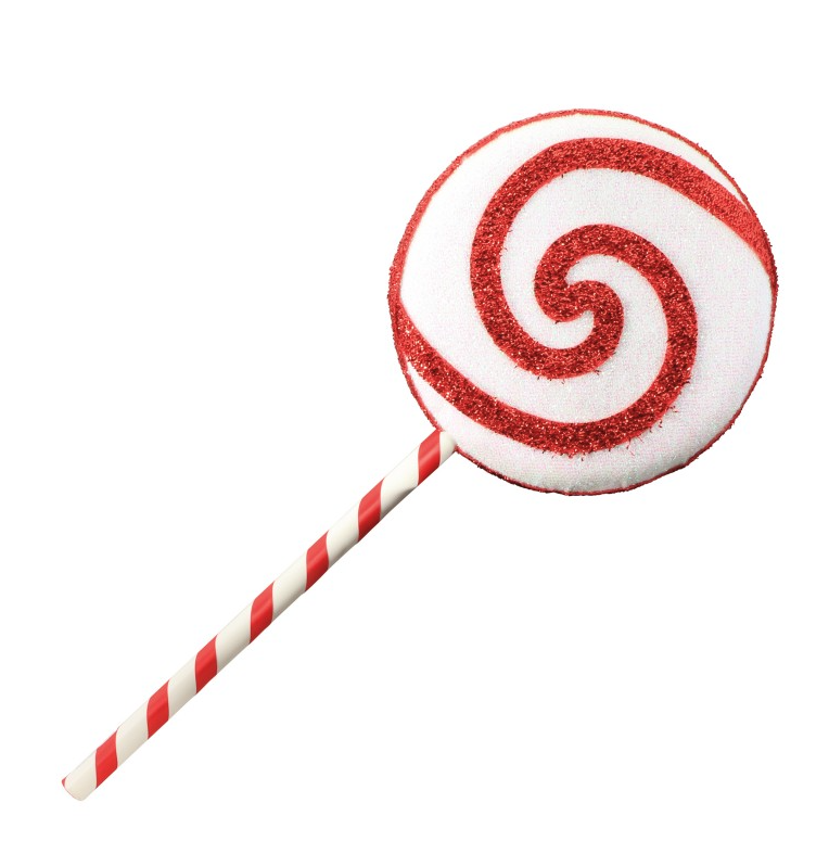 Палочка для леденца изготовлена из пластика, покрыта мягким материалом и красными блестками. Верх конфеты изготовлен из пенопласта и покрыт блестящим материалом.