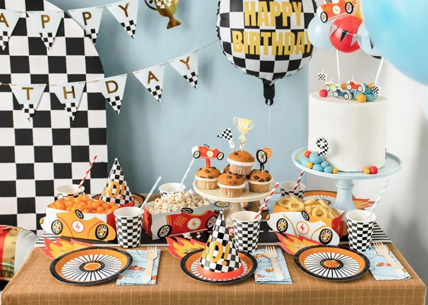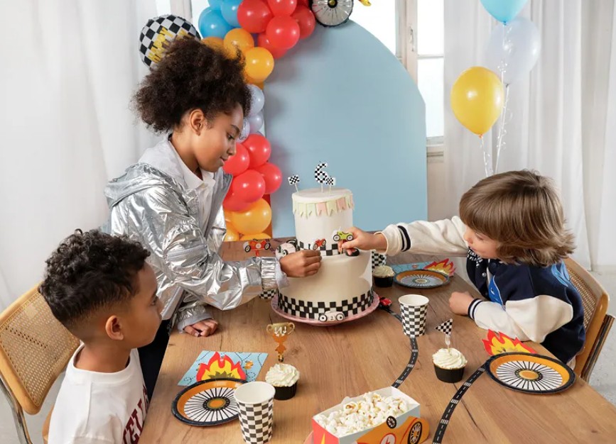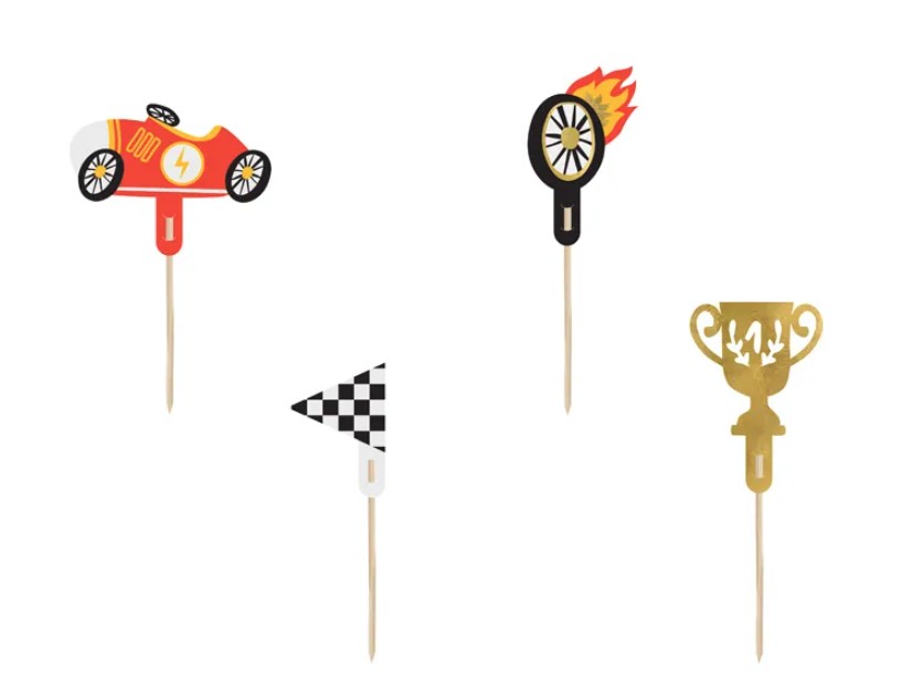 Uzkodu kociņi ar sacīkšu braucēja elementiem.