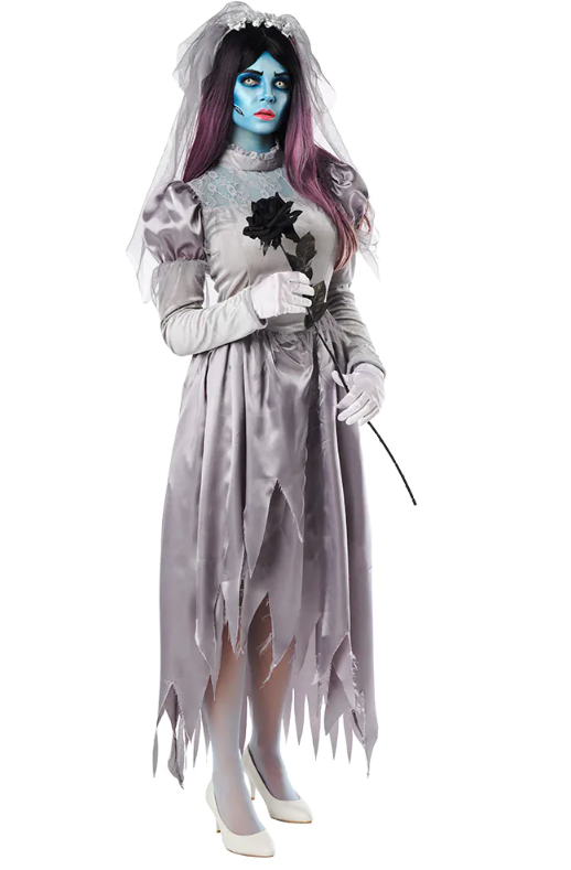 Sieviešu kostīms Pelēkā Līgava, kas būs lieliski piemērots noslēpumainai Helovīna ballītei.