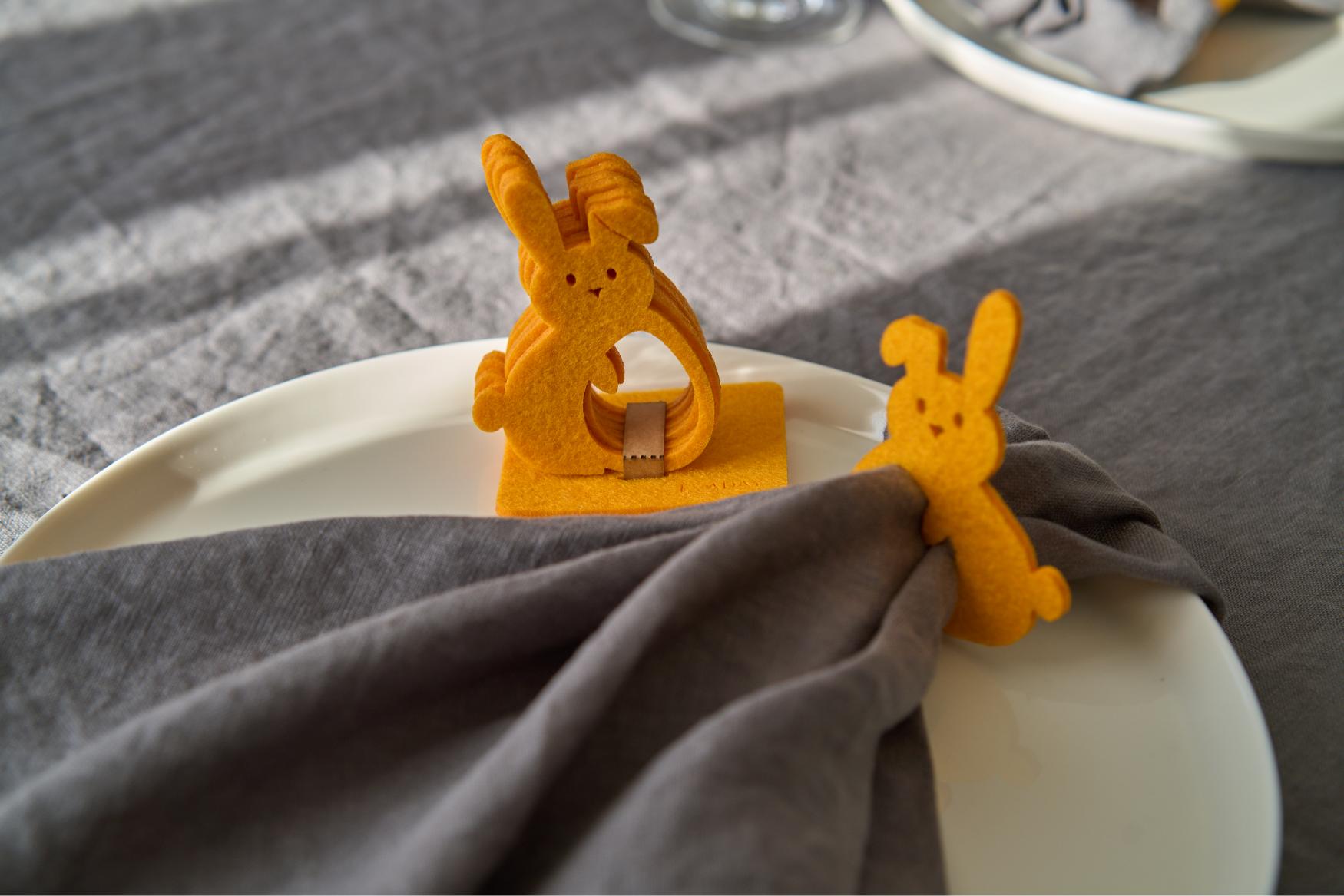 Žiedai servetėlėms „Apkabink zuikį“, geltoni (6 vnt.)
