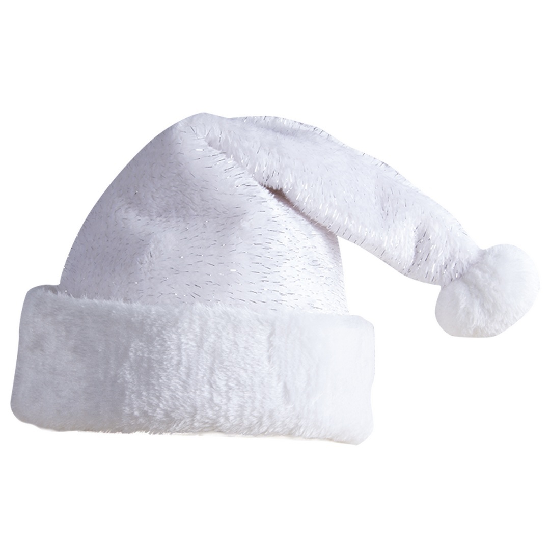 Mīksta un maiga materiāla Ziemassvētku vecīša cepure, baltas svītras ar sudrabainiem akcentiem.